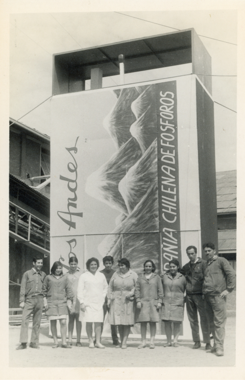 Año 1969. En esta imagen, mi madre, Aurora del Carmen Moya Contreras aparece embarazada de mí, está acompañada por sus compañeros de trabajo. Ella dedicó 48 años de su vida laboral a la Compañía Chilena de Fósforos, desempeñándose como practicante, lo que hoy conocemos como paramédico.