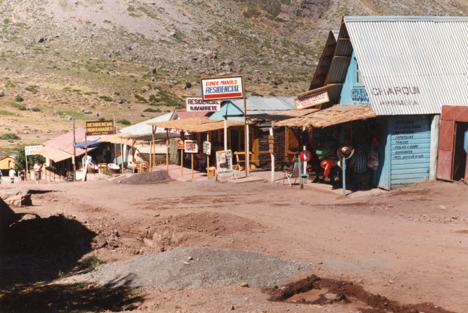 Vista de la calle principal de las Termas del Flaco, donde se encuentran las residenciales y el comercio.