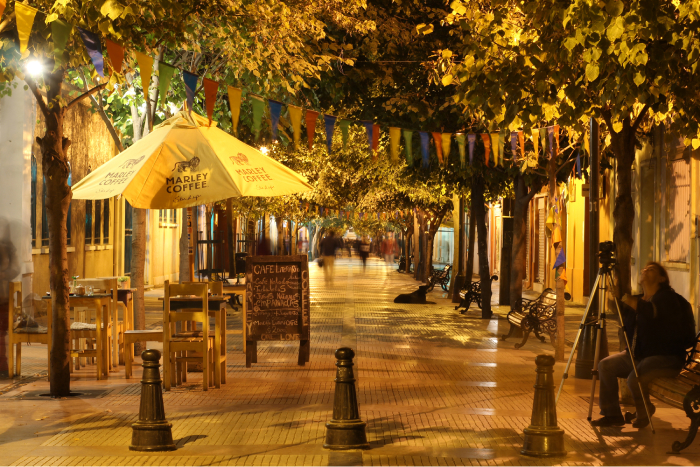 Vista nocturna del Paseo Estado, en el centro de Rancagua. Fotografía tomada en abril de 2019.