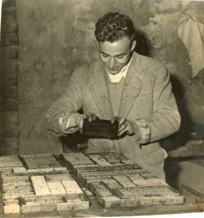 En esta fotografía, se observa a Osvaldo Barahona desempeñándose en el Diario El Rancagüino, ubicado en la intersección de las calles Campos y O’Carroll. En épocas pasadas, este lugar se encontraba próximo al antiguo Teatro Apolo en el centro de Rancagua.